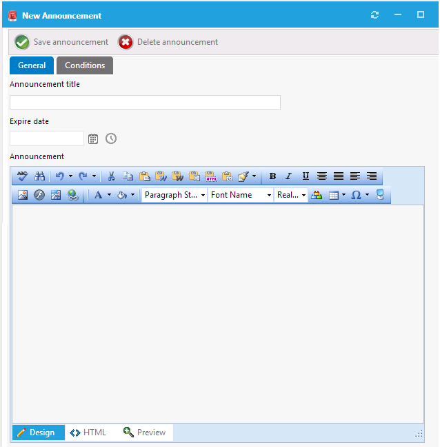- In the Expire date field, enter the date and time after which you no longer want this announcement displayed. If you do not enter an Expire date , the announcement will not expire.