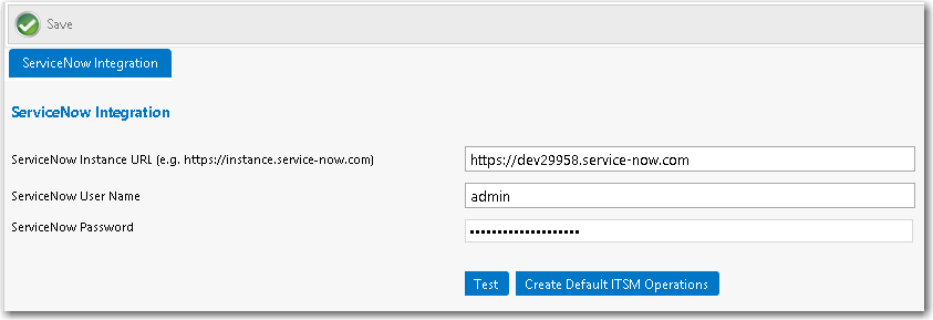 Default ServiceNow Operations created successfully. Please click ITSM Integration node to view the list of systems and operations.