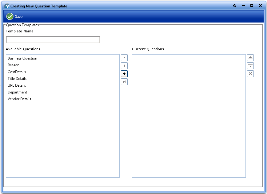 - Close the Question Template Properties dialog box. The new question template is now listed on the Template Manager View .