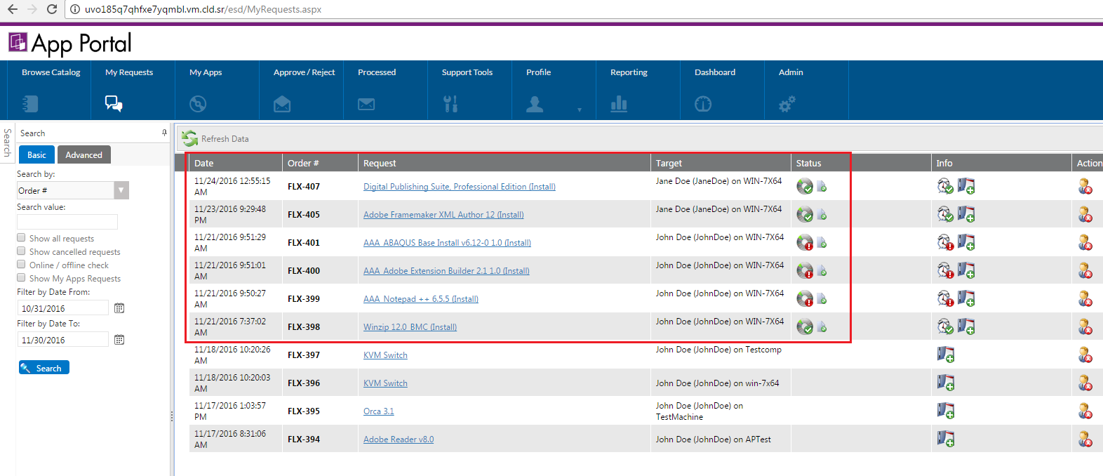 Once the request is placed in BMC MyIT, the same request can be seen in App Portal on the My Request tab, where you can monitor the deployment status.