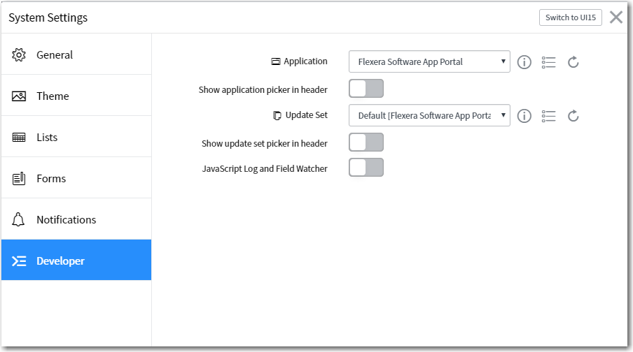 3. Change the value of the Application field from Global to Flexera Software App Portal and close the view.