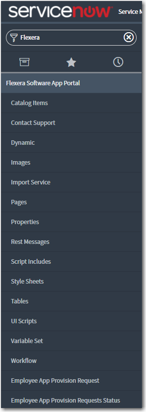 10. Click Commit Update Set . As soon as the update set is committed, if you enter Flexera in the ServiceNow search box, and you will see the following new items listed in the menu: